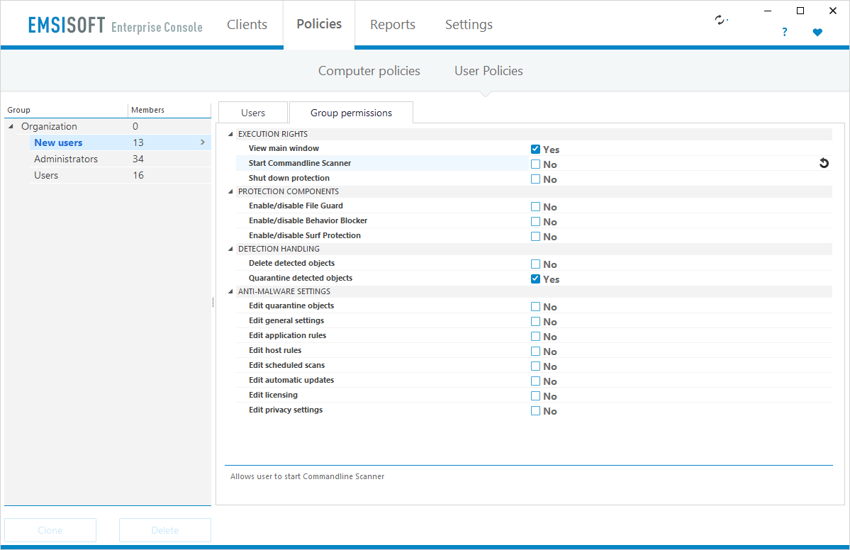 - Дефинирајте ги корисничките групи на кои им е дозволено да модификуваат специфични поставки за заштита, т.е. на неискусните корисници не треба да им биде дозволено да се имаат пристап до поставувањата или да имаат опција да ја оневозможат заштитата.