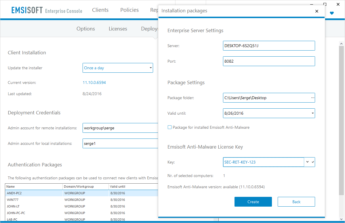 - Да, Емсисофт бизнис конзолата исто така доаѓа со интерфејс на командна линија кој може да се користи за да се автоматизираат инсталациските пакети за да додадете нови компјутери кон конзолата.